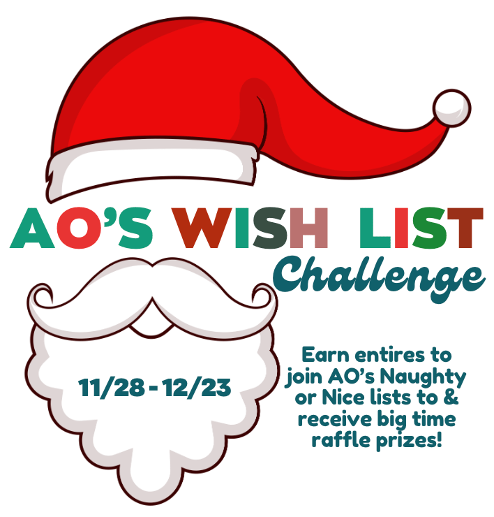 Complete tasks on AOโs Wish List from 11/28 - 12/23. Each task you complete equals one entry into our prize raffle! Youโll choose whether to enter the Nice List or Naughty List raffle for a chance to win amazing gifts from our partners.